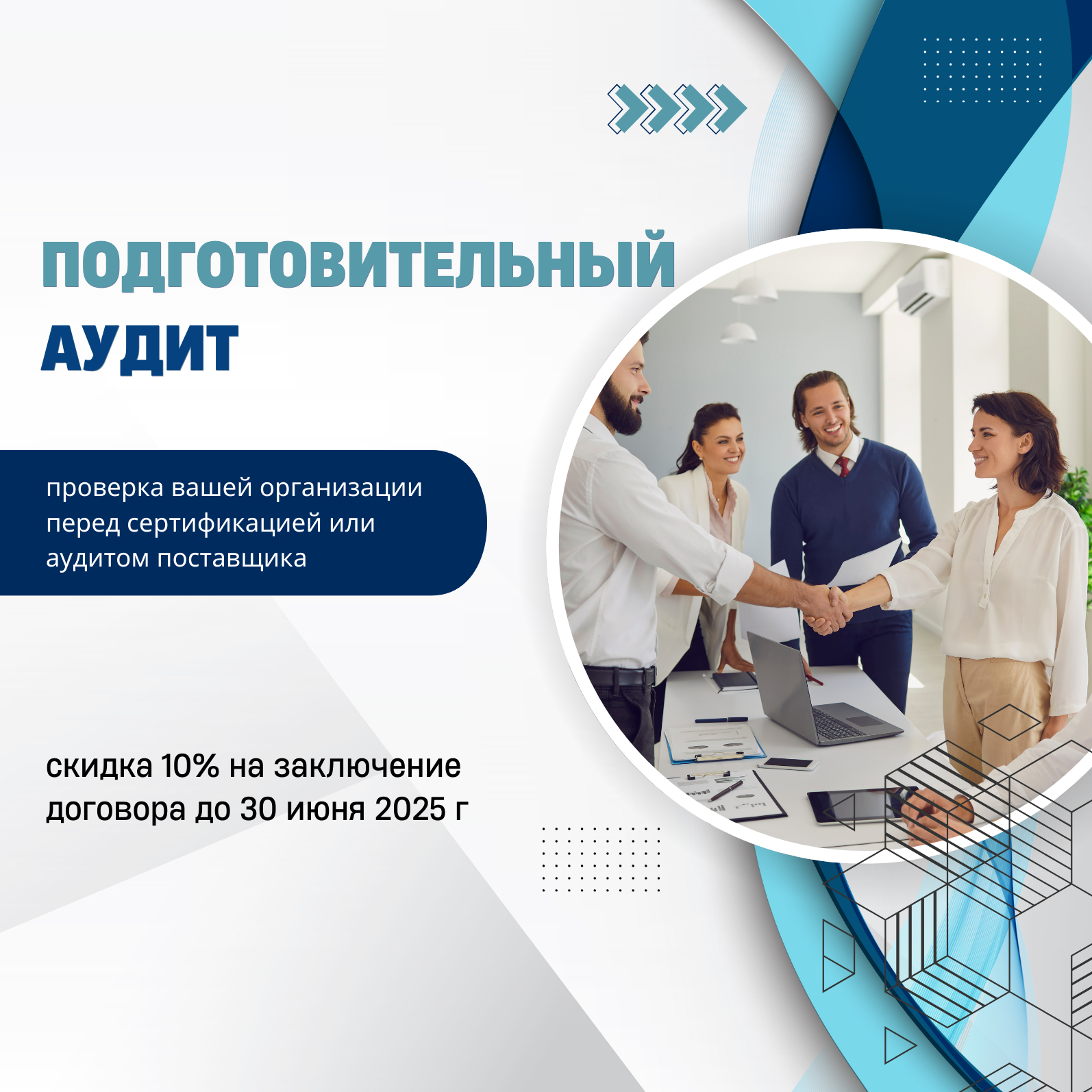Это даст вам возможность оперативно устранить все проблемы и существенно повысить шансы на успешную сертификацию или высокие баллы при аудите поставщика. Мы поможем вам подготовиться, чтобы процесс аудита прошёл без лишних затрат и нервов.